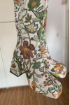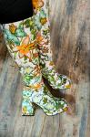 レビュー: レディース フラワープリント ゴーゴーブーツ ブロックヒール プラットフォーム ニーハイブーツ