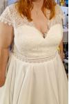 レビュー: アイボリー ボヘミアン ウェディングドレス レース スプリットフロント Aライン バックレス 半袖 Vネック ブライダルドレス トレーン付き 無料カスタマイズ