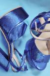 レビュー: 女性のウエディング サンダル ブルー オープン トゥ ブロック ヒール アンクル ストラップ サンダル