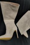 レビュー: レディース マイクロスエード ハイヒールブーツ ポインテッドトゥ 膝丈ブーツ