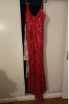 レビュー: 赤いスパンコールのイブニングドレス マーメイド Vネック トレーン付き 社交パーティードレス