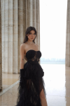 レビュー: フリル マキシ ドレス ストラップレス ノースリーブ クラシック 誕生日パーティー ドレス