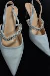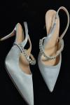 レビュー: サテンのプロムシューズ、ブラックのラインストーン、ポインテッドトゥ、スティレットヒール、スリングバックパンプス