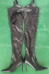 レビュー: セクシーなハイヒールブーツプラスサイズポインテッドトゥブーツシャフト調節可能なバックルスティレットヒールブラックサイハイブーツ膝上ブーツ