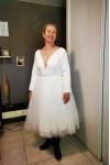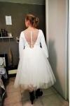 レビュー: ショートウェディングドレス 2026 膝丈 Vネック 7分袖 Aライン ナチュラルウエスト ブライダルドレス 無料カスタマイズ