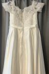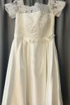 レビュー: レトロ ウェディングドレス アイボリー 半袖 ナチュラルウェストライン くるみボタン Aライン ひざ下