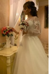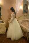 レビュー: シンプルなウェディングドレス 2026 Aライン イリュージョンネック 長袖 レースアップリケ チュール ボーホーウェディングドレス