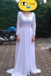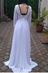 レビュー: シンプルなウェディングドレスAラインVネック長袖床長シフォンレースビーチウェディングドレス