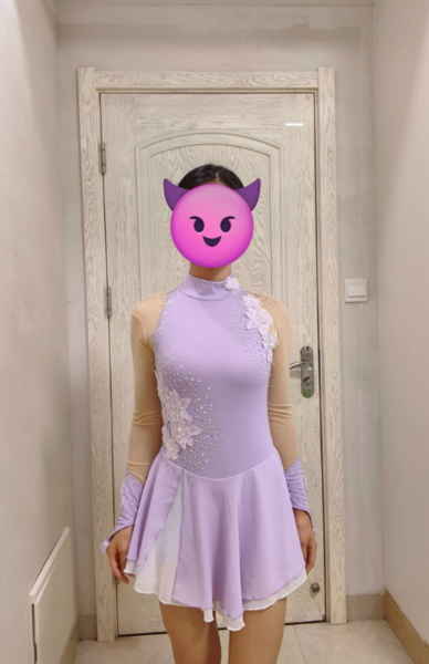 女の子用アップリケ付きアイススケートダンスコスチューム、シンプルでゆったりとした女性用フィギュアスケート競技ドレス、体操レオタード