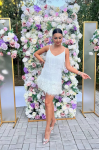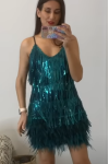 レビュー: ソフトピンクのミニサンドレス スパゲッティストラップ タッセル フェザーヘム バースデーパーティードレス