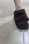 レビュー: スエード ミュール ローファー スクエアトゥ ルーシュ フラットシューズ レディース