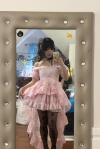 レビュー: スイートロリータドレス レースアップ リボン スリップドレス メッシュ ハイロースカート