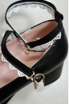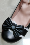 レビュー: 甘いロリータシューズブラックボウレースラウンドトゥPUレザーロリータパンプス