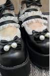 レビュー: ロリータシューズ パール弓PUレザーウェッジヒール スイート ロリータポンプ ホワイト