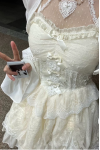 レビュー: スイートロリータ JSK ドレス エクリュ ホワイト ノースリーブ パール レース ロリータ ジャンパー スカート ウェディング ドレス