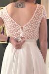 レビュー: ツーピースウェディングドレス レース レース Vネック ツーピース フロアレングス バックレス 半袖 アイボリー