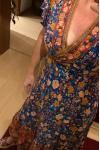 Ein richtig schickes Teil. Die Farben sind leuchtend und das Material ist sehr leicht und luftig und hautfreundlich. Die Groesse passt perfekt. Ich bin 1,64 Meter und 54 Kilogramm und habe eine S bestellt. Die Laenge geht bis ueber den Knoechel. Es sind kleine Arme dran, das finde ich sehr schoen. Weiterhin ist der Ausschnitt ganz toll. Hinten gibt es einen Reissverschluss der dem ganzen Kleid zu einer guten Passform verhilft. Ich empfehle es gern weiter und wuerde es jederzeit wieder kaufen.