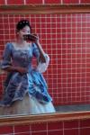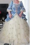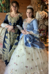 レビュー: ビクトリア朝のドレスコスチューム女性のロココフローラルプリントトランペット半袖スクエアネックラインシャンパンマリーアントワネットコスチュームマスカレードボールガウンドレス