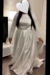 l****1Couleur:BlancTaille:EU 44フィット感:サイズが小さいドレスは実物ではとても美しいです。写真ほど腫れてないです。見た目を良くするには、下にクリノリンのスカートが必要だと思います。サイズに関しては、ドレスのサイズは小さいので、通常のサイズより3サイズ大きくしました(サイズ40ですが46を選びました)。後ろにはレースが付いているので、プリンセスドレスのように締めることができます。とても長くて、私の身長は1メートル70なので、ドレスが引きずってしまいます。後ろには1メートルのトレーンがあり、すべてがとてもきれいです。透明ではなく、非常に不透明です。そしてすでにライナーが組み込まれています。ベールをかぶった女の子や隠すのが好きな女の子に最適です
