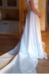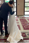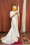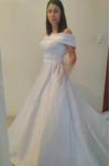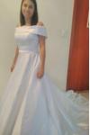 レビュー: ヴィンテージウェディングドレス 2026 オフショルダー 半袖 Aライン サテン 伝統的なブライダルガウンスウィープトレーン付き