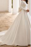 レビュー: ヴィンテージウェディングドレス ジュエルネック ロングスリーブ ナチュラルウエスト サテン生地 トレーンリボン付き ブライダルガウン
