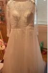 レビュー: ウェディングドレス 2025 vネック Aライン 長袖 マキシ丈 レースアップリケ チュールブライダルドレストレーン付き