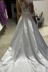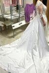 レビュー: ウェディングドレス 2025 Aライン vネック 半袖 マキシ丈 レースアップリケ サテン ヴィンテージ ブライダルガウントレーン付き