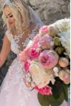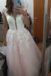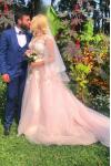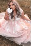 レビュー: プリンセスウェディングドレス ラウンドネック ブライダルドレス ソフトピンク 結婚式 披露宴 花嫁ドレス チュール ノースリーブ 挙式 スウィープトレーン ウェディングドレス