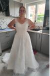 m****eFarbe:elfenbeinfarbeGröße:EU 52フィット感:サイズが大きいとても素敵なドレス。胸周りが少し大きく、トレーンもとても長めですが、調整していただけます。夫にもゲストにも大好評でした。私たちはとても幸せです
