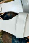 レビュー: ホワイトブライダルシューズ女性オープントゥアンクルストラップフラットウェディングシューズ