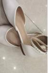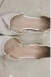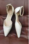 レビュー: ホワイトフラットブライダルシューズポインテッドトゥパールアンクルストラップウェディングシューズ