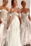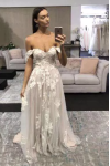 レビュー: ウェディングドレスホワイトストラップレスノースリーブバックレストレインチュールロングレースブライダルガウン