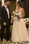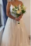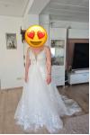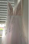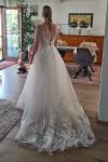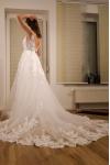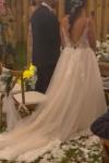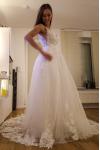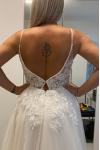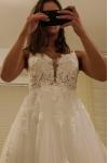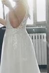 レビュー: ホワイトレースのウェディングドレスVネックノースリーブバックレストレインレースチュールロングブライダルガウン