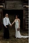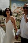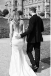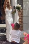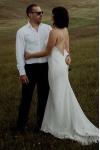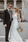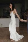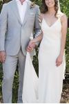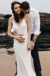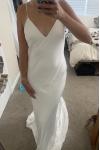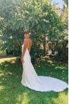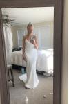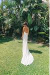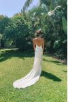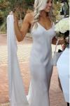 レビュー: シンプルなウェディングドレス トレインシースVネックスパゲッティストラップノースリーブバックレスブライダルドレスと白い