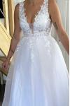 レビュー: ホワイトのシンプルなレースのウェディングドレス Vネック ノースリーブ バックレス Aライン ブライダルドレス 無料カスタマイズ