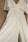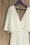 レビュー: シンプルなウェディングドレス ホワイト ストレッチクレープ VネックハーフスリーブAラインブライダルドレス