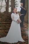 レビュー: 電車の高い襟の長袖レースの白いシンプルなウェディングドレスレースAラインブライダルドレス