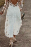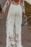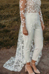 レビュー: ホワイトのシンプルなウェディングジャンプスーツ ジュエルネック 長袖 レース Aライン ブライダルジャンプスーツ 無料カスタマイズ