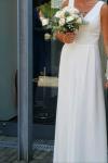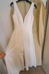 レビュー: ホワイトのシンプルなウェディングジャンプスーツ ストレッチクレープ Vネック ノースリーブ Aライン ブライダルジャンプスーツ 無料カスタマイズ