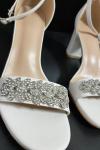 レビュー: ホワイトウェディングシューズ オープントゥ ラインストーン ブロックヒール アンクルストラップ ブライダルシューズ