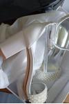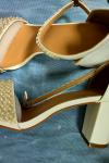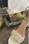 レビュー: ホワイト ウェディング シューズ パール オープン トゥ アンクル ストラップ ブロック ヒール ウェディング サンダル