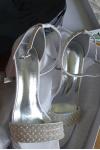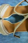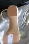 レビュー: ホワイト ウェディング シューズ パール オープン トゥ アンクル ストラップ ブロック ヒール ウェディング サンダル