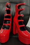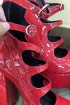 レビュー: レディース アンクルブーツ レッド チャンキーヒール プラットフォーム カットアウト バックルディテール サンダル ブーティ