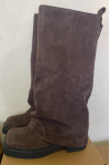 レビュー: レディース スエード フラットブーツ ラウンドトゥ ルーシュ フォールドオーバー ニーハイブーツ