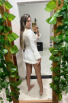 レビュー: 女性ボディコンドレスホワイトフード付き長袖ストレッチクリスマスハロウィンcosホリデードレス