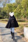 レビュー: ポンチョ コート 折り襟 マントコート レッド レディースアウター ウール レディースファッション 普通 無地 ボタン アカデミック プラスサイズ