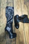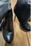 レビュー: 女性ニーハイブーツ PU レザーブラックラウンドトゥコーンヒールセクシーなハイヒールブーツ