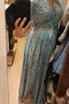 レビュー: 女性マキシドレスプリントハーフスリーブスプリットフロアレングスラップドレス