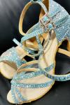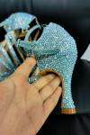 レビュー: ラテンダンスシューズのぞき見つま先ゴブレットヒールラインストーンボールルームブラックダンスシューズ