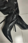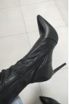 レビュー: ニーハイ ブーツ 本革 おしゃれ ハイヒール ポインテッドトゥ 秋 冬 ブラック